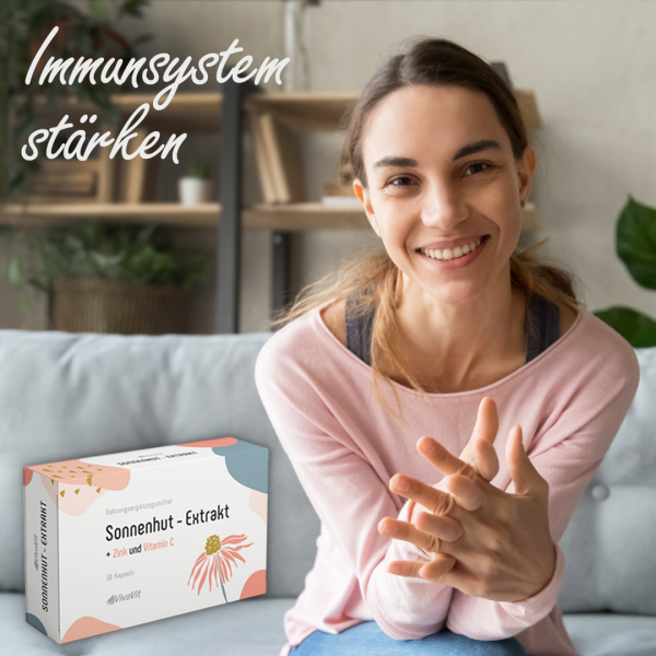 Umfassende Unterstützung für das Immunsystem durch Sonnenhut-Extrakt (Echinacea Purpurea/Echinacin) Vitamin C, Selen und Zink.